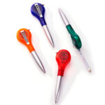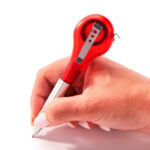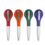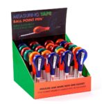 Dual-function clip measure ballpoint pen combines a smooth-writing pen with a 39-inch retractable tape measure for office efficiency. Features a secure clip for easy attachment. Ideal promotional gift option with custom logo imprinting available for bulk orders.