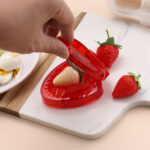 Slice strawberries effortlessly with this strawberry slicer—FDA-approved and stainless steel blades for perfect, uniform cuts. Bright red ABS design enhances kitchen aesthetics. Ideal for wholesale buyers—custom branding available for promotional giveaways and retail packaging.